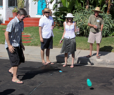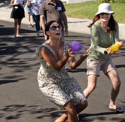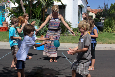 | Nicole gives the invocation before the start of the water balloon competition. | ![]() |